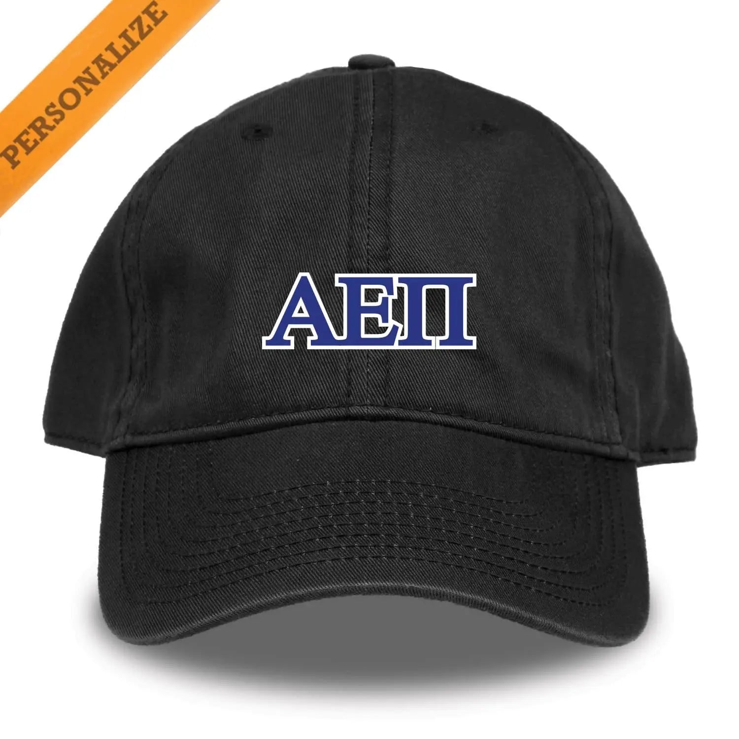 Nothing beats a black ball cap that is personalized with your name or chapter! With Alpha Epsilon Pi's colors representing your Greek letters embroidered on a classic black cap, this relaxed hat will soon become your go to for any occasion. Made from garment washed twill and features adjustable slide buckle closure. This Alpha Epsilon Pi Black Hat is sure the have all of your fraternity brothers envious of your impeccable style.