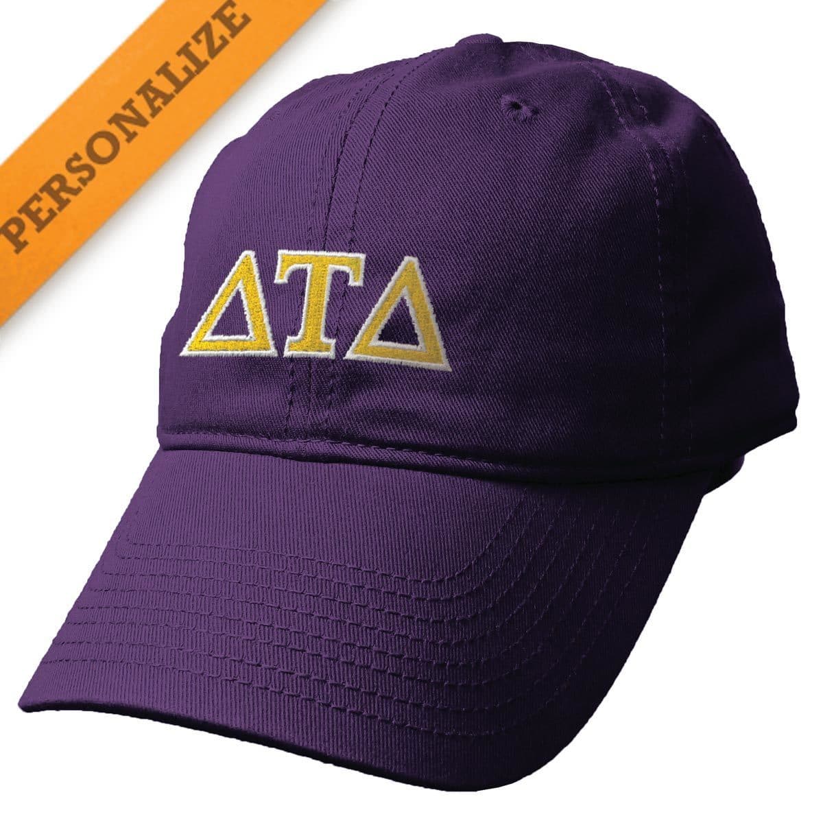 Two color embroidered greek letters on the front Unstructured, 100% cotton. Adjustable strap-back.