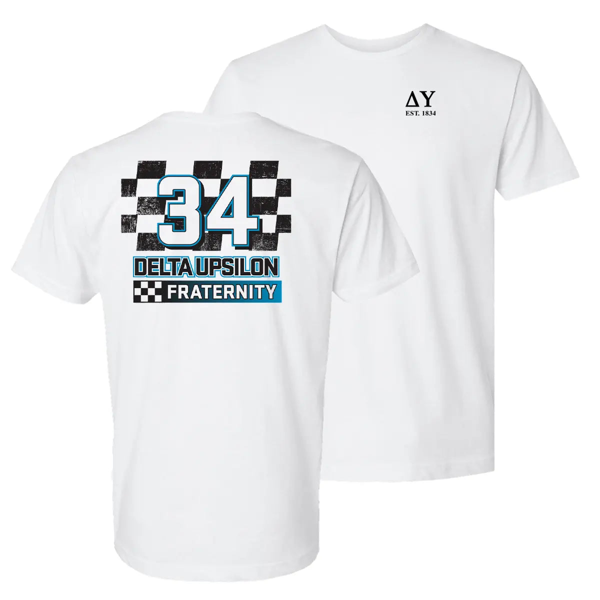 Rev up your fraternity style with the Delta Upsilon Victory Lap Short Sleeve Tee! Whether you're crossing the finish line or crossing campus, this Victory Lap tee lets you carry the spirit of Delta Upsilon with race-day style. Perfect for Greek life events or casual wear, this comfortable tee combines fraternity pride with motorsport flair. The checkered racing motif gives a nod to the high-energy spirit of your brotherhood. It's not just a t-shirt it's your ticket to the winner's circle of fraternity fashion!