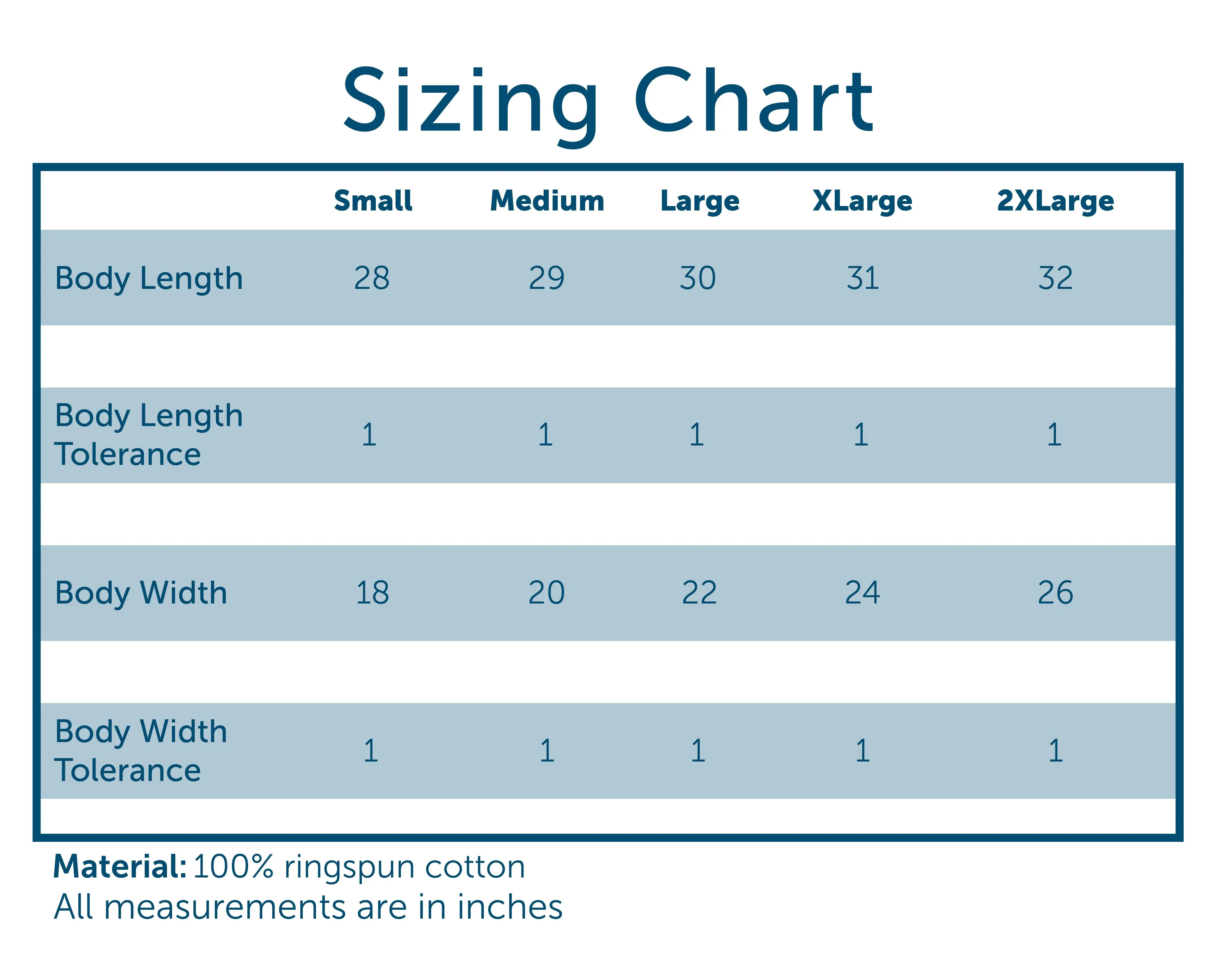 *Please Note: This shirt is 100% cotton so a small amount of shrinkage is expected.