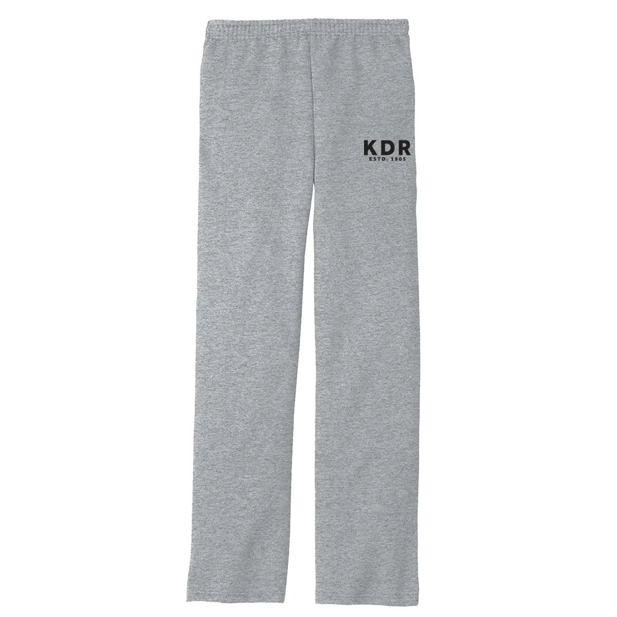Made from a soft, midweight cotton-blend fleece, these pants feature a relaxed, straight-leg fit with a flexible elastic waistband and no side seams - giving you that clean, classic look with max comfort. The left leg is decorated with the Kappa Delta Rho established year, paying homage to the legacy of your fraternity in a minimalist, modern way.