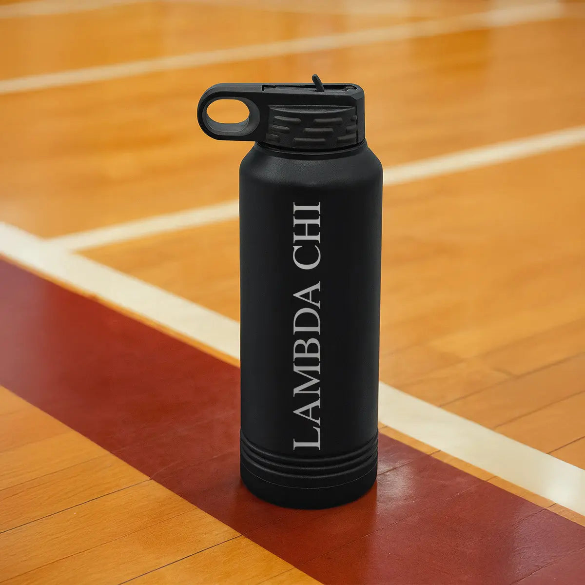 Meet your new go-to bottle - engineered for performance, designed for brotherhood. This Lambda Chi 32oz black water bottle combines rugged stainless steel durability with sleek, modern style to keep up with your busiest days on campus, at the gym, or on the road.
