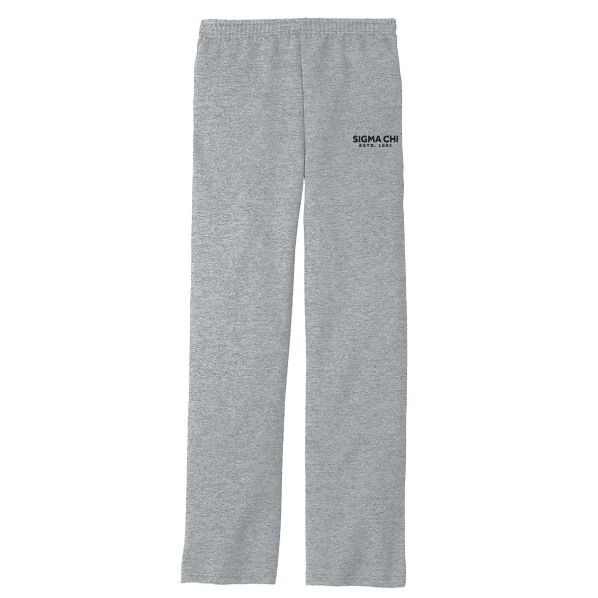 Made from a soft, midweight cotton-blend fleece, these pants feature a relaxed, straight-leg fit with a flexible elastic waistband and no side seams - giving you that clean, classic look with max comfort. The left leg is decorated with the Sigma Chi established year, paying homage to the legacy of your fraternity in a minimalist, modern way.