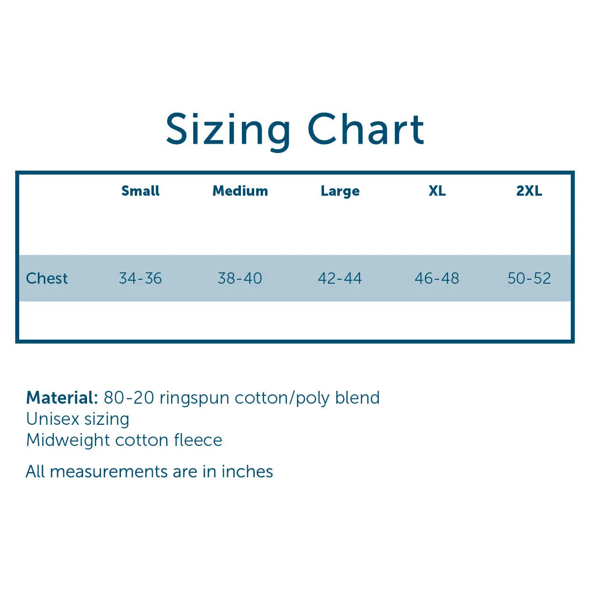 This midweight crewneck is made of a 75/25 cotton/poly blend with a classic, unisex fit.