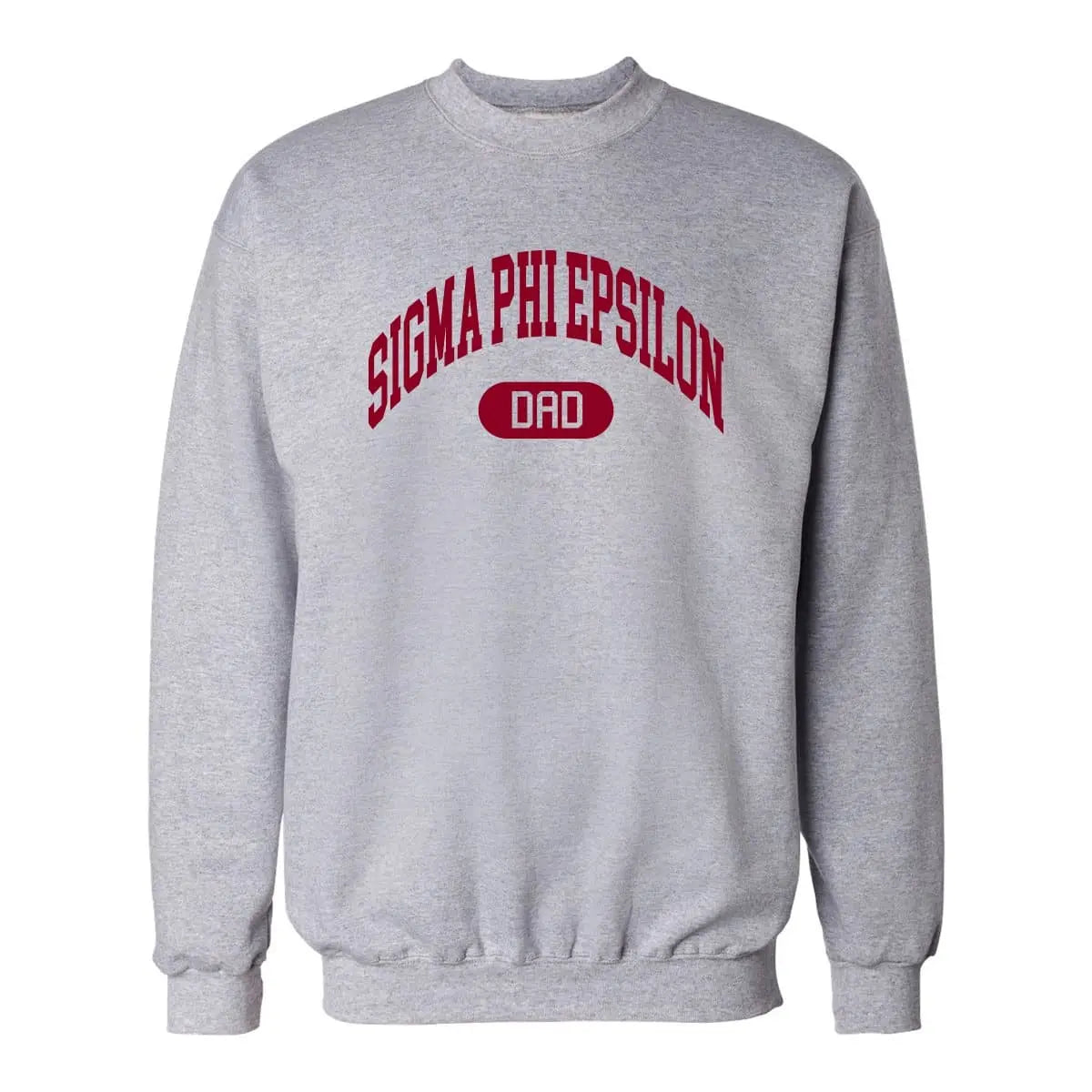 Show your dad how much he means to you by gifting him with this SigEp Classic Dad Crewneck! The design is classic and will never go out of style so you know he'll be rocking it for years to come. Our Sigma Phi Epsilon sweatshirt is printed on a 9.7 oz. Hanes crewneck.