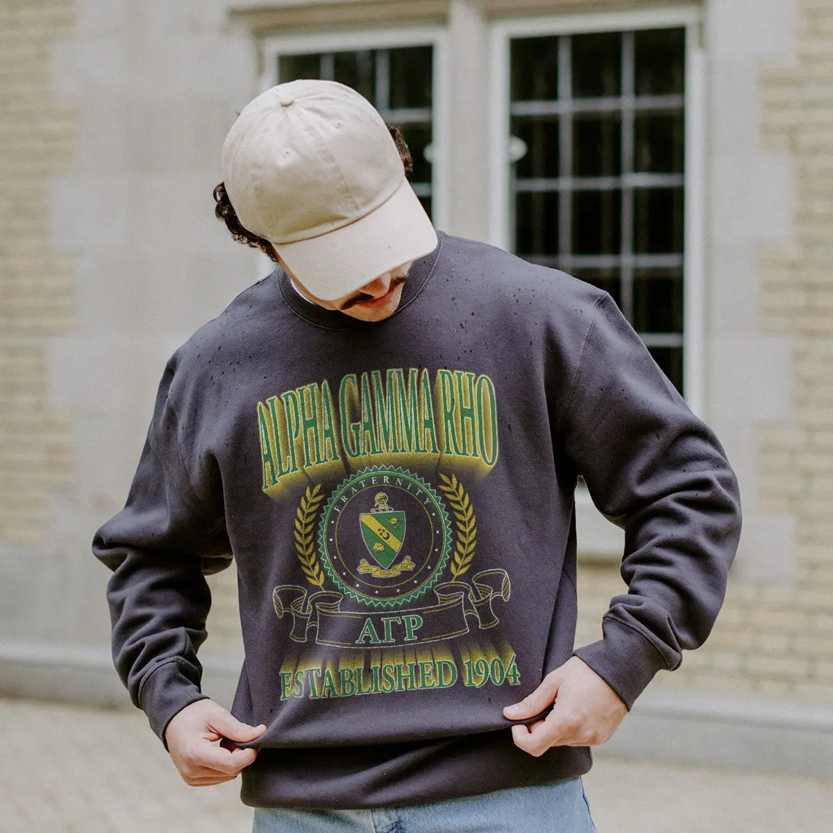 Make a bold statement with the AGR Heavyweight Graphic Crewneck, inspired by classic large-print athletic apparel. Crafted from a durable 10 oz cotton-poly blend, this sweatshirt delivers a true heavyweight feel that is thick, warm, and built to last. The front features bold Alpha Gamma Rho lettering tied into a vintage collegiate design that stands out. With its sturdy construction and soft interior, this crewneck is perfect for showcasing fraternity pride in comfort and style.