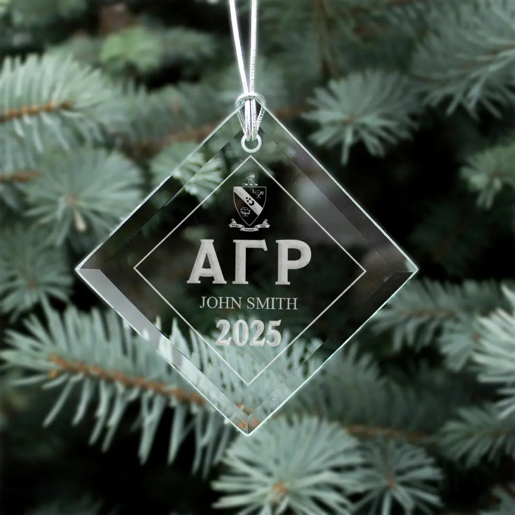 Laser-engraved with the official Alpha Gamma Rho crest, the diamond-shaped glass design is simple, elegant, and full of meaning.
