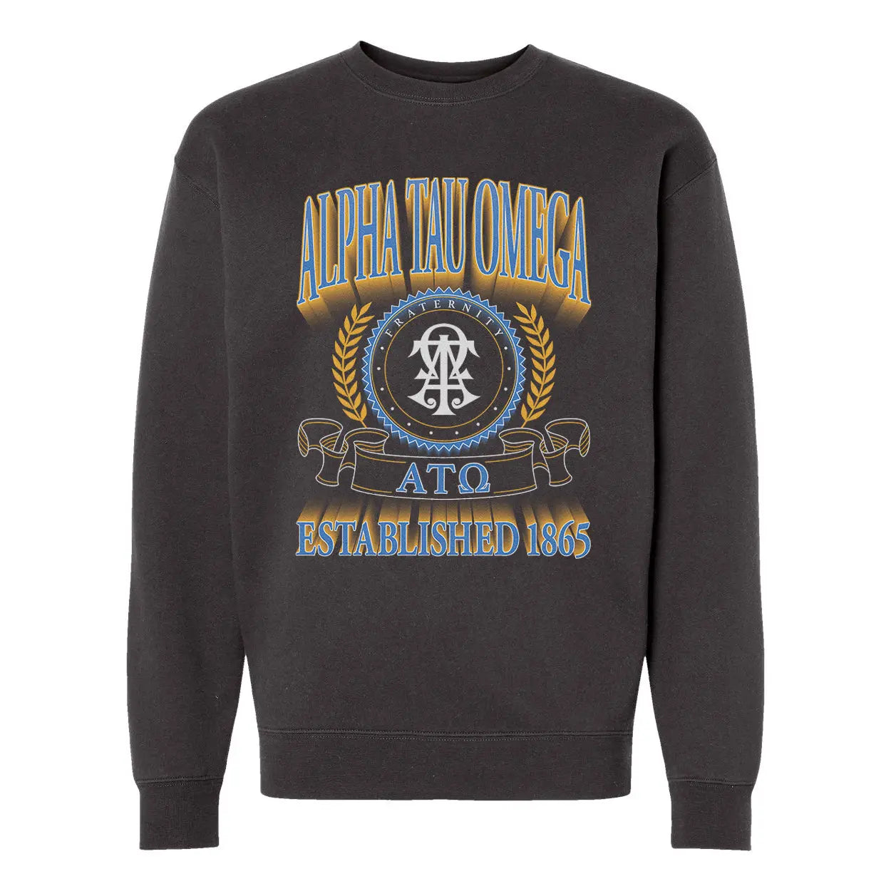 Make a bold statement with the ATO Heavyweight Graphic Crewneck, inspired by classic large-print athletic apparel. Crafted from a durable 10 oz cotton-poly blend, this sweatshirt delivers a true heavyweight feel that is thick, warm, and built to last. The front features bold Alpha Tau Omega lettering tied into a vintage collegiate design that stands out. With its sturdy construction and soft interior, this crewneck is perfect for showcasing fraternity pride in comfort and style.