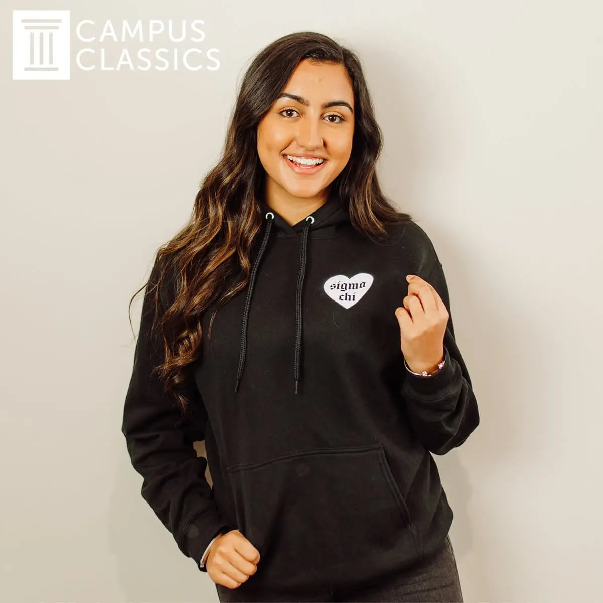Classically ATO but oh so trendy! Show your sweetheart how much she's loved with this Alpha Tau Omega sweetheart hoodie. Decorated on the left chest with a heart and group nickname, it's simple and cute and super cozy (which, let's be real, is all she wants).