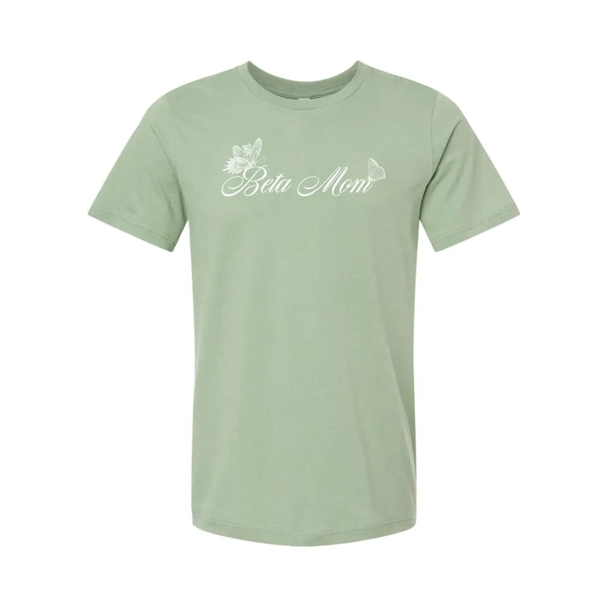Show your mom some love with a new t-shirt! This sage green tee features "Beta Mom" surrounded by delicate butterflies. Your mom is proud of her Beta Theta Pi, let her show the world in this new fraternity mom t-shirt.