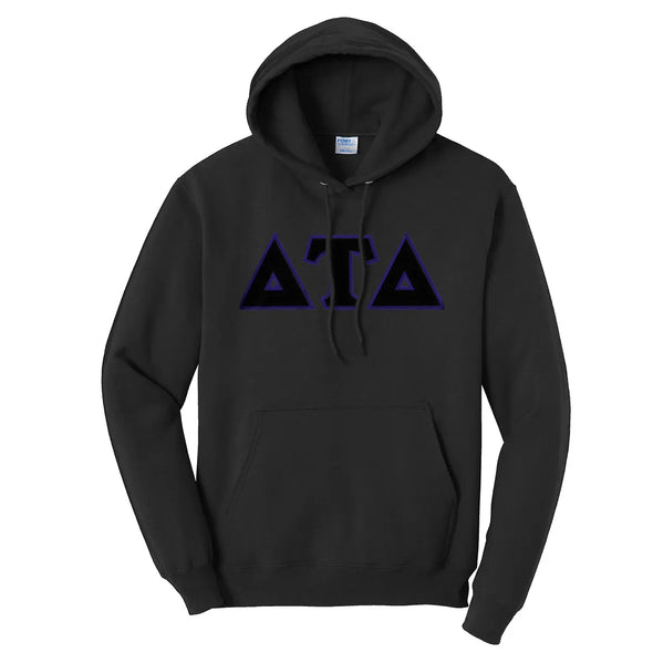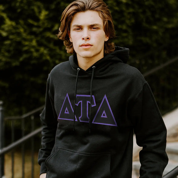 This classic traditional sewn-on Delt greek letter hoodie has a modern twist that you'll love. Delta Tau Delta twill letters are tightly stitched to the front of this 50/50 Cotton/Polyester fraternity mid-weight hooded sweatshirt.