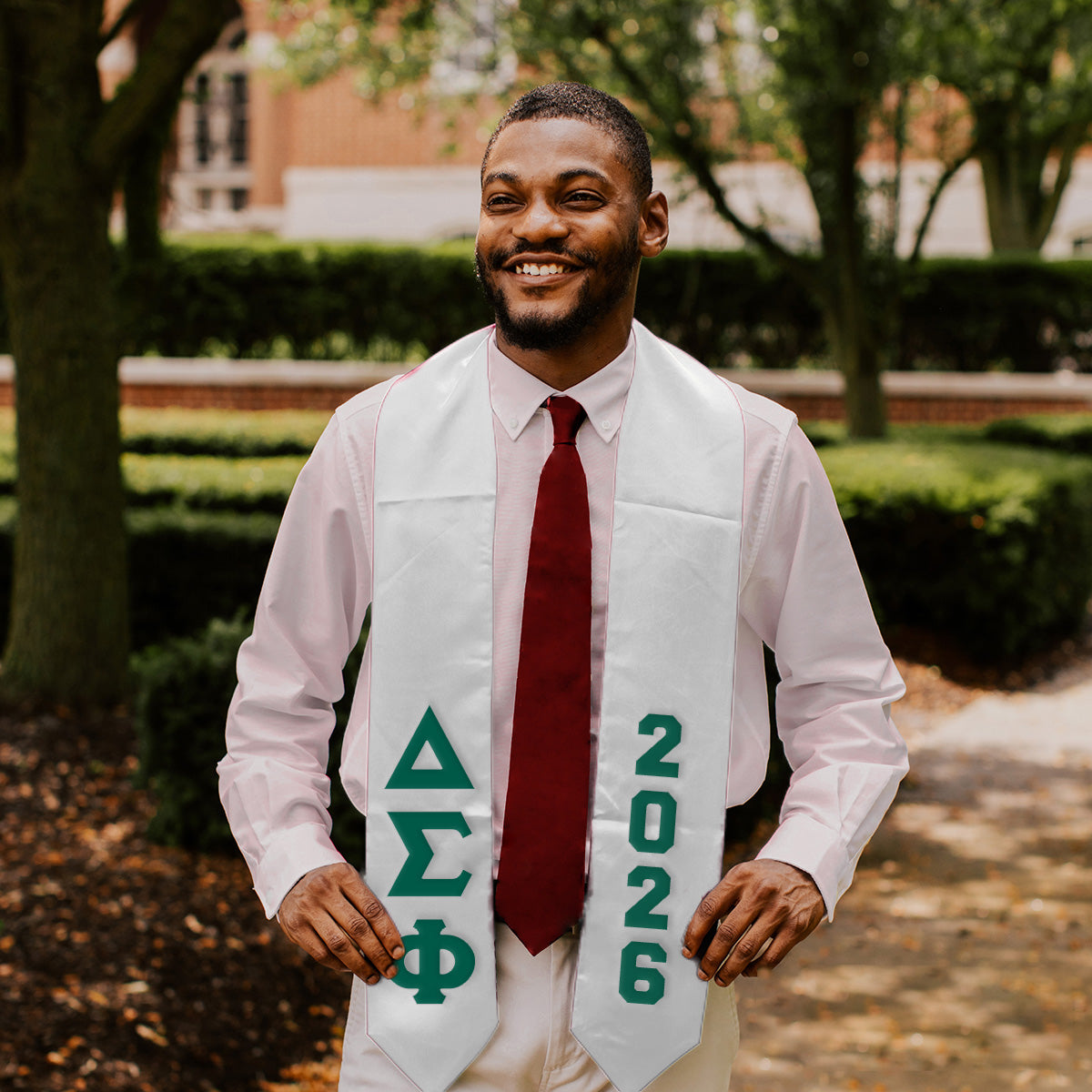 Make graduation a classic with this timeless Delta Sig graduation stole. Its decorated with Delta Sigma Phi's Greek letters and colors and marks the graduation year as well. Stand out on your graduation day with this stole!