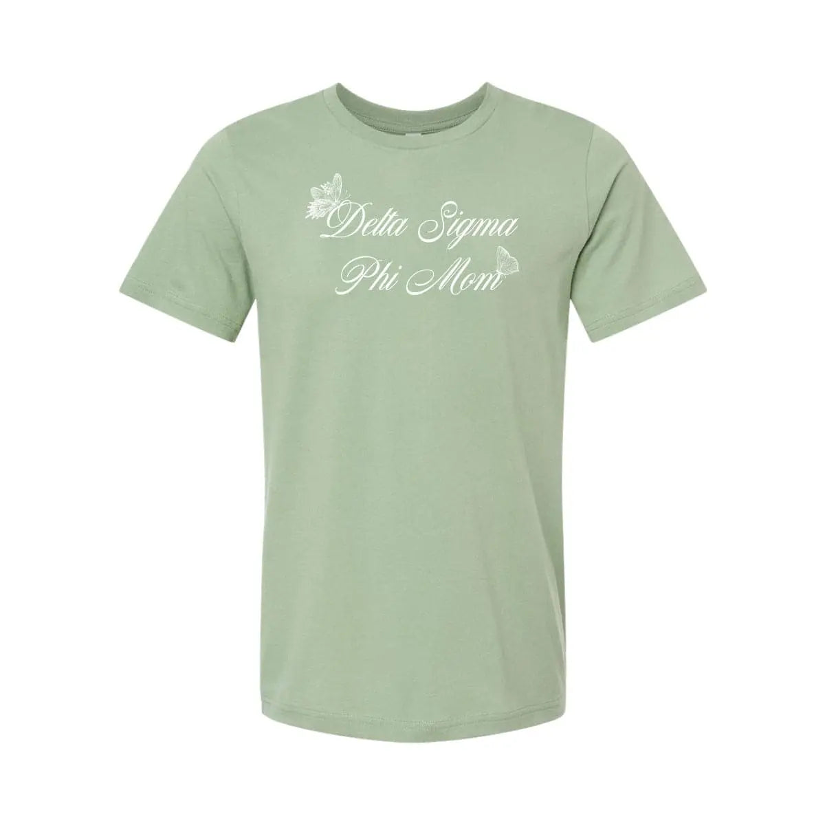 Show your mom some love with a new t-shirt! This sage green tee features "Delta Sig Mom" surrounded by delicate butterflies. Your mom is proud of her Delta Sigma Phi, let her show the world in this new fraternity mom t-shirt.