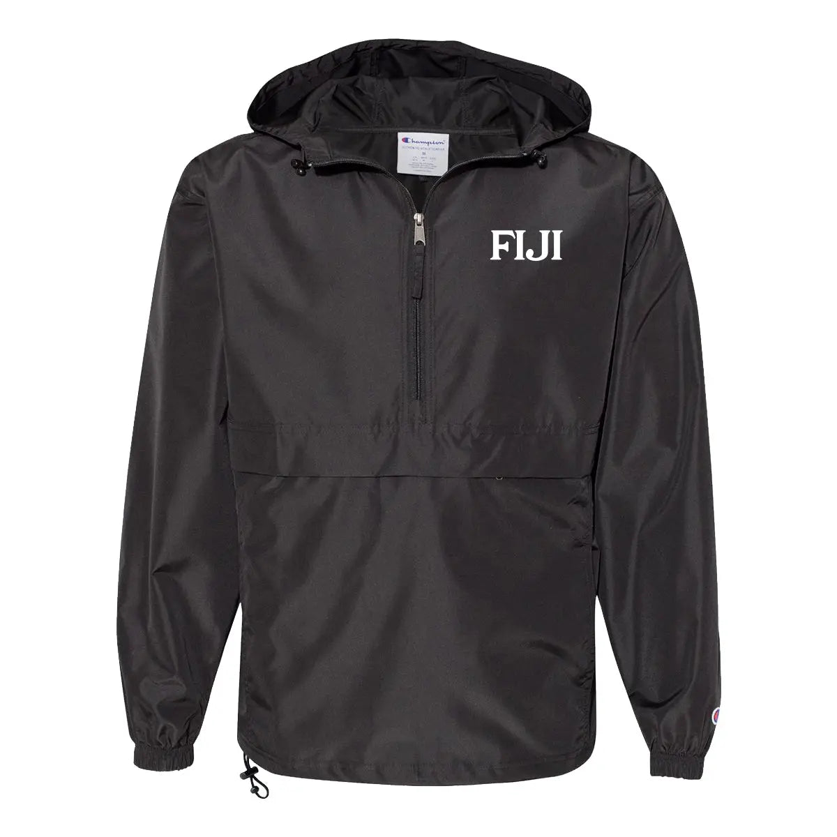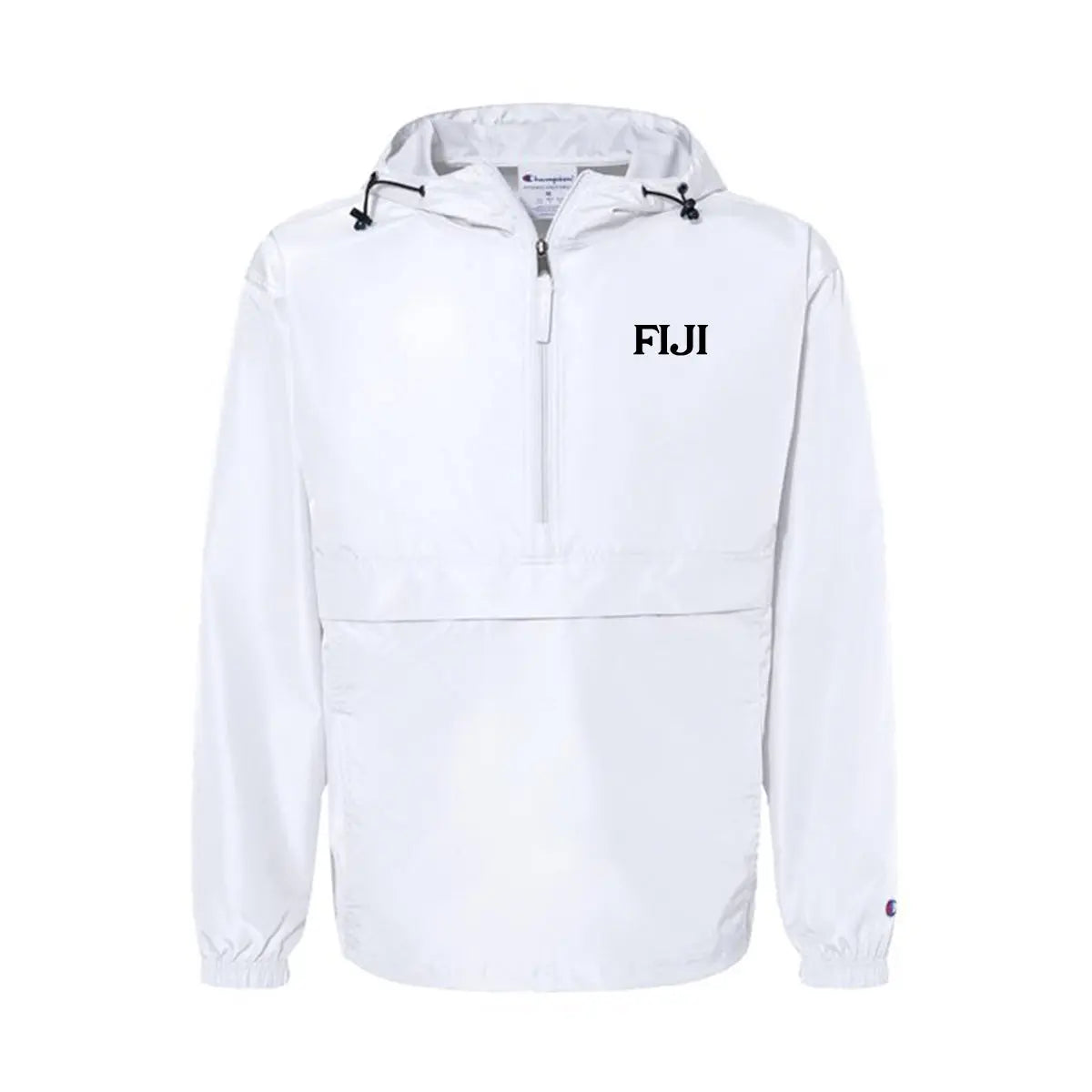This FIJI windbreaker is sleek and durable to last you through your college days! Whether you're caught in the rain on campus or celebrating a windy win for your school this wind and water-resistant jacket is all you'll need. This windbreaker comes with subtle Phi Gamma Delta Greek letters on the left chest with your choice of a black or white jacket.