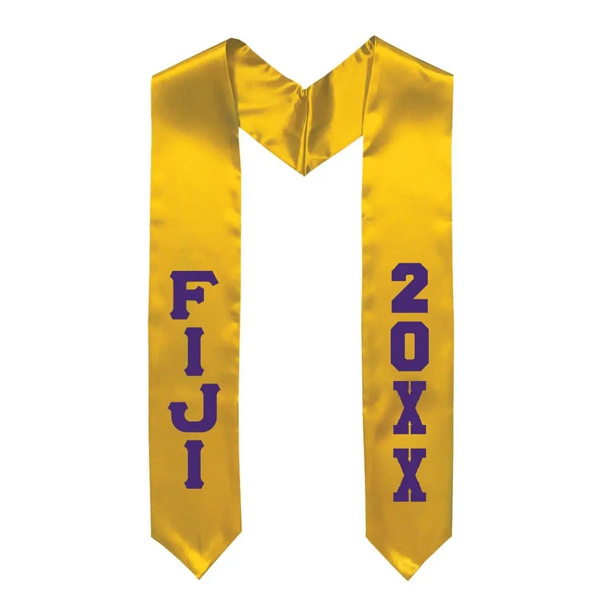 Make graduation a classic with this timeless FIJI graduation stole. Its decorated with Phi Gamma Delta's Greek letters and colors and marks the graduation year as well. Stand out on your graduation day with this stole!