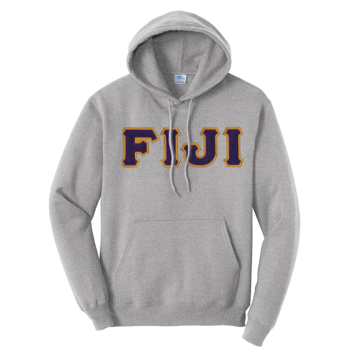 There's nothing like a classic sewn-on letter hoodie. Represent FIJI in style in this 50/50 cotton/poly fleece blend hoodie with stitched Greek letters.