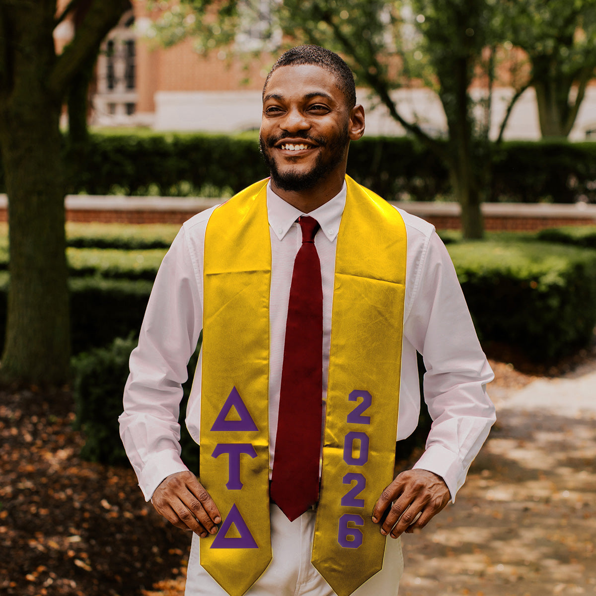 Make graduation a classic with this timeless graduation stole. Its decorated with Greek letters and colors and marks the graduation year as well. Stand out on your graduation day with this stole!