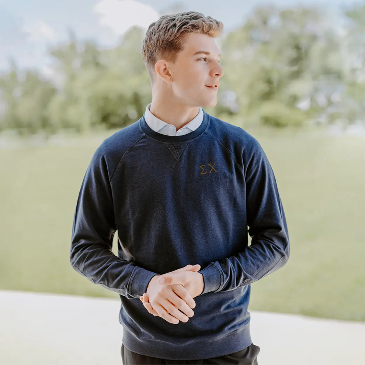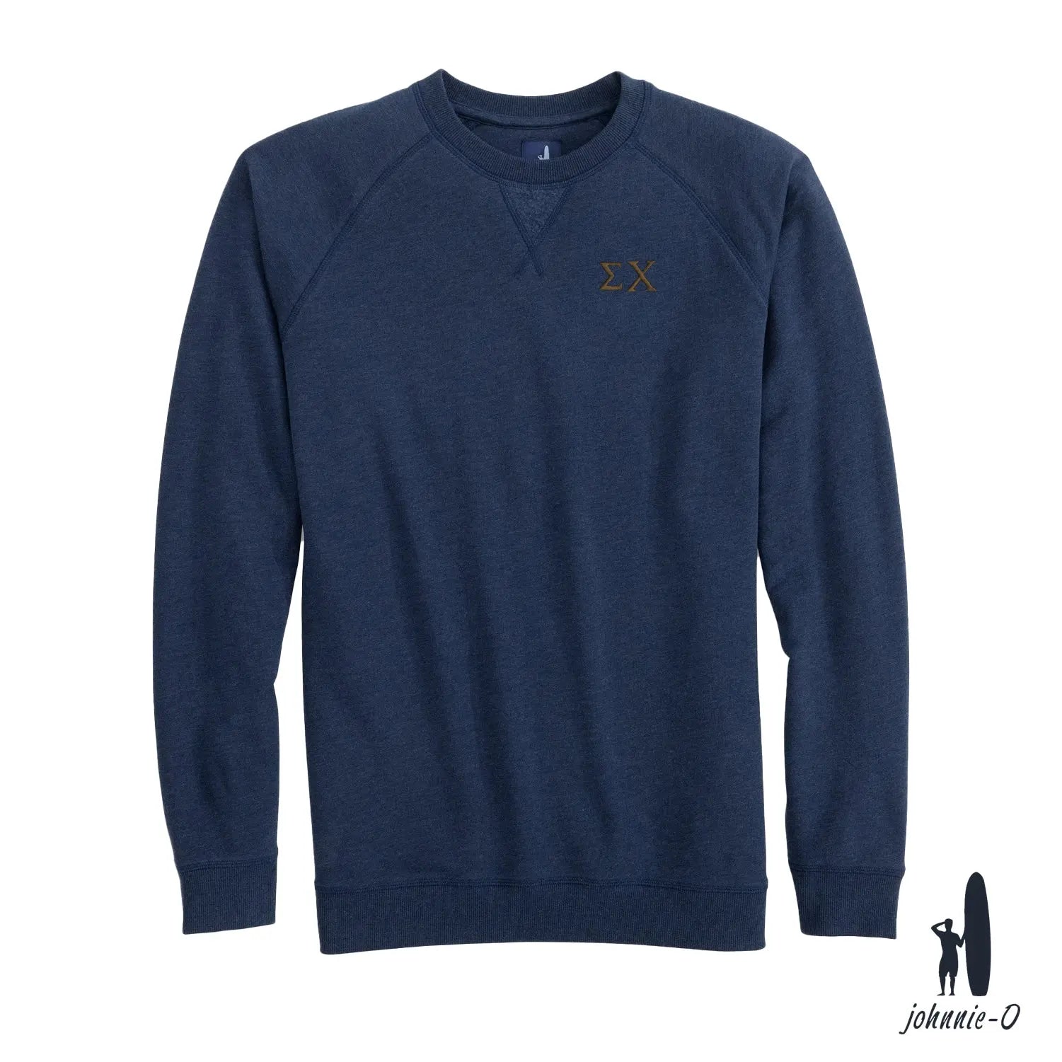 Elevate your fraternity wear with the Freeman Crewneck by Johnnie-O. This premium navy sweatshirt features subtle Greek letters embroidered in brown, offering a refined way to display your brotherhood. Made with Johnnie-O's signature attention to quality and comfort, the Freeman Crewneck combines classic collegiate style with modern sophistication.