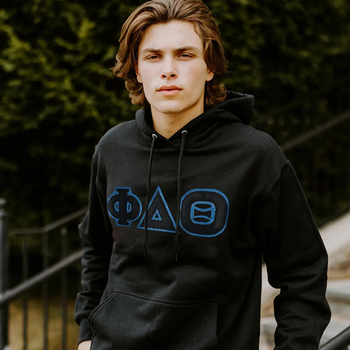 This classic traditional sewn-on Phi Delt greek letter hoodie has a modern twist that you'll love. Phi Delta Theta twill letters are tightly stitched to the front of this 50/50 Cotton/Polyester fraternity mid-weight hooded sweatshirt.