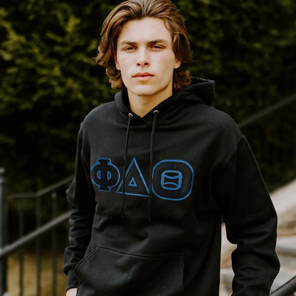 Phi Delt Black Hoodie with Black Sewn On Letters