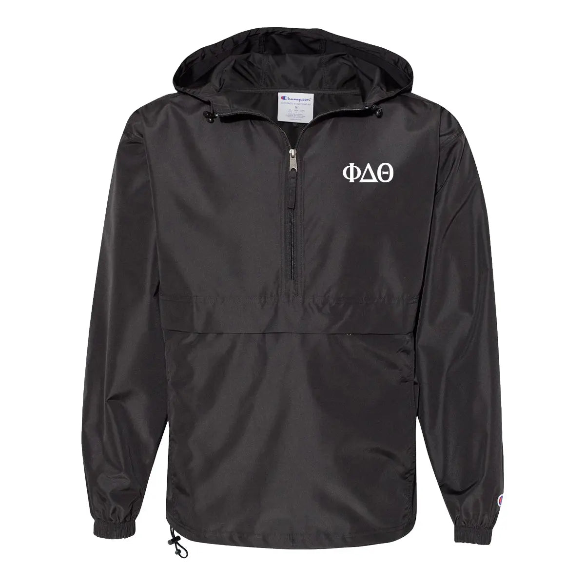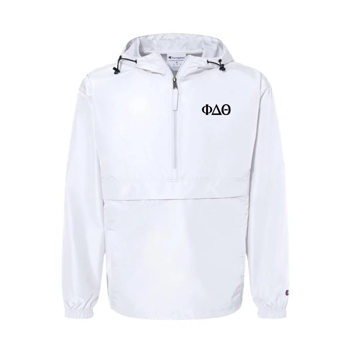 This Phi Delt windbreaker is sleek and durable to last you through your college days! Whether you're caught in the rain on campus or celebrating a windy win for your school this wind and water-resistant jacket is all you'll need. This windbreaker comes with subtle Phi Delta Theta Greek letters on the left chest with your choice of a black or white jacket.