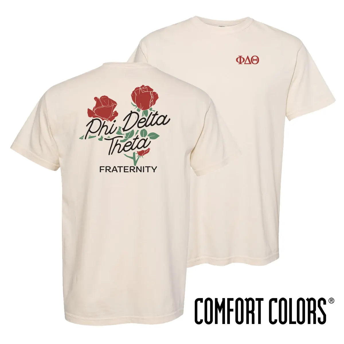 This Phi Delt Rosebud Comfort Colors t-shirt has everything you need. Featuring a rosebud design on an ivory tee, this 100% ring spun cotton Comfort Colors shirt lets you show your Phi Delta Theta pride in casual comfort.