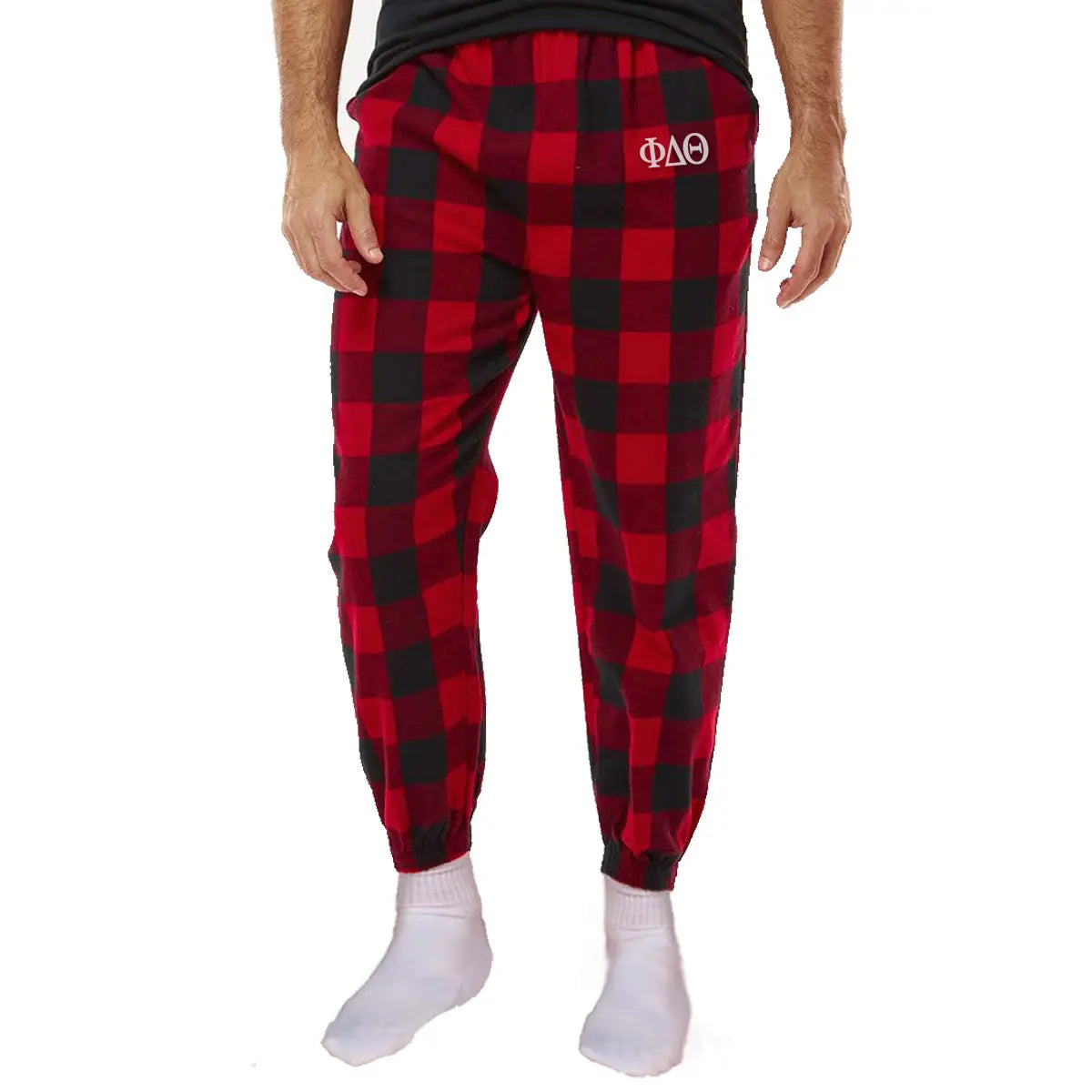 Lounge around in comfort or wear them to holiday parties - these joggers are a versatile addition to any Phi Delt's wardrobe. The classic plaid print and super soft flannel fabric make them perfect for Christmas and the winter season. Whether you're relaxing at home or headed to class, the Phi Delta Theta Flannel Joggers have you covered. The elastic waist and ankle cuffs ensure maximum comfort no matter where you're headed.