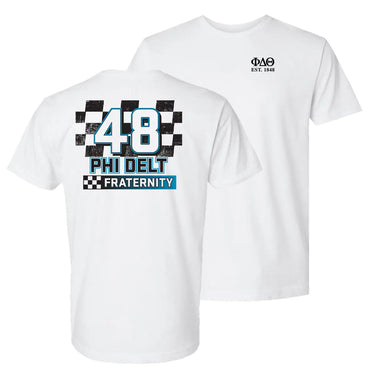 Rev up your fraternity style with the Phi Delt Victory Lap Short Sleeve Tee! Whether you're crossing the finish line or crossing campus, this Victory Lap tee lets you carry the spirit of Phi Delta Theta with race-day style. Perfect for Greek life events or casual wear, this comfortable tee combines fraternity pride with motorsport flair. The checkered racing motif gives a nod to the high-energy spirit of your brotherhood. It's not just a t-shirt it's your ticket to the winner's circle of fraternity fashion!