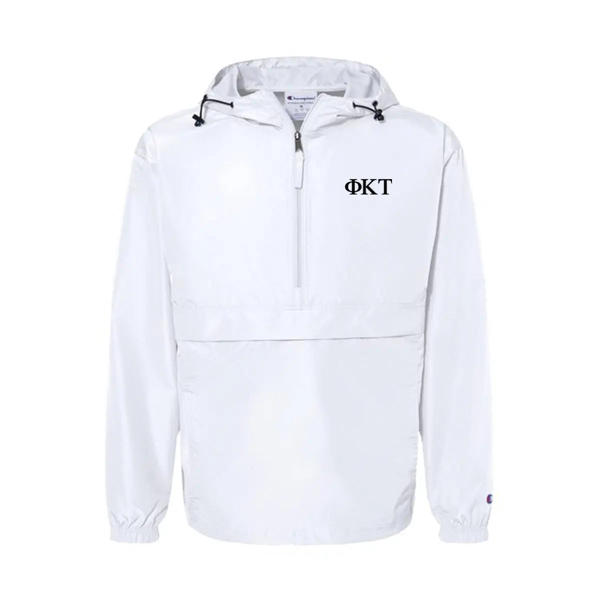 This Phi Tau windbreaker is sleek and durable to last you through your college days! Whether you're caught in the rain on campus or celebrating a windy win for your school this wind and water-resistant jacket is all you'll need. This windbreaker comes with subtle Phi Kappa Tau Greek letters on the left chest with your choice of a black or white jacket.