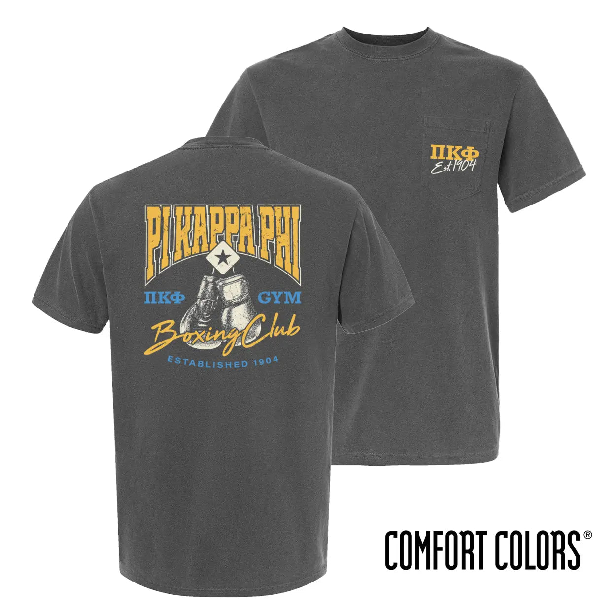 The Pi Kapp Boxing Club Tee delivers old-school gym vibes with a bold vintage look. Printed on a soft, faded dark grey Comfort Colors tee, it features worn-in graphics designed to feel like an old favorite from day one. Whether you're hitting the gym, heading to a Pi Kappa Phi chapter event, or just keeping things casual, this tee adds the perfect punch of personality to your rotation.