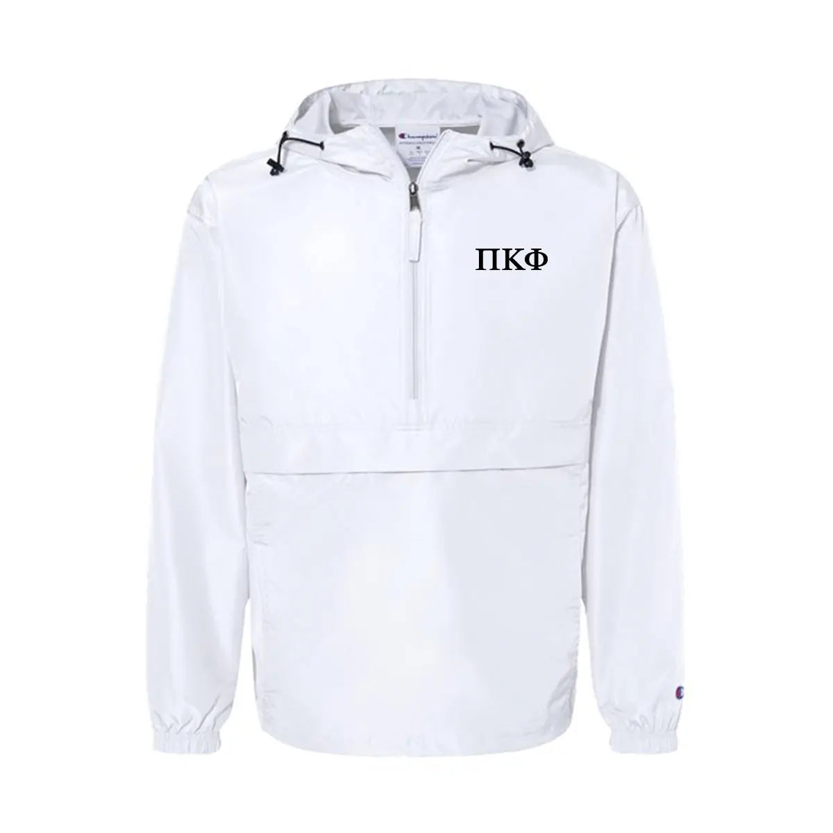 This Pi Kapp windbreaker is sleek and durable to last you through your college days! Whether you're caught in the rain on campus or celebrating a windy win for your school this wind and water-resistant jacket is all you'll need. This windbreaker comes with subtle Pi Kappa Phi Greek letters on the left chest with your choice of a black or white jacket.