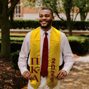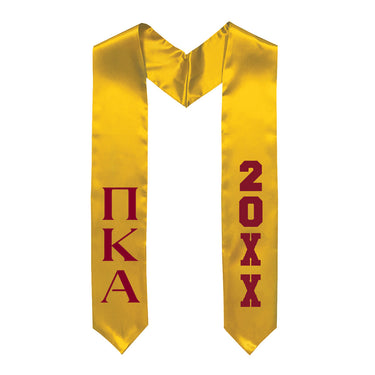 Make graduation a classic with this timeless Pike graduation stole. Its decorated with Pi Kappa Alpha's Greek letters and colors and marks the graduation year as well. Stand out on your graduation day with this stole!