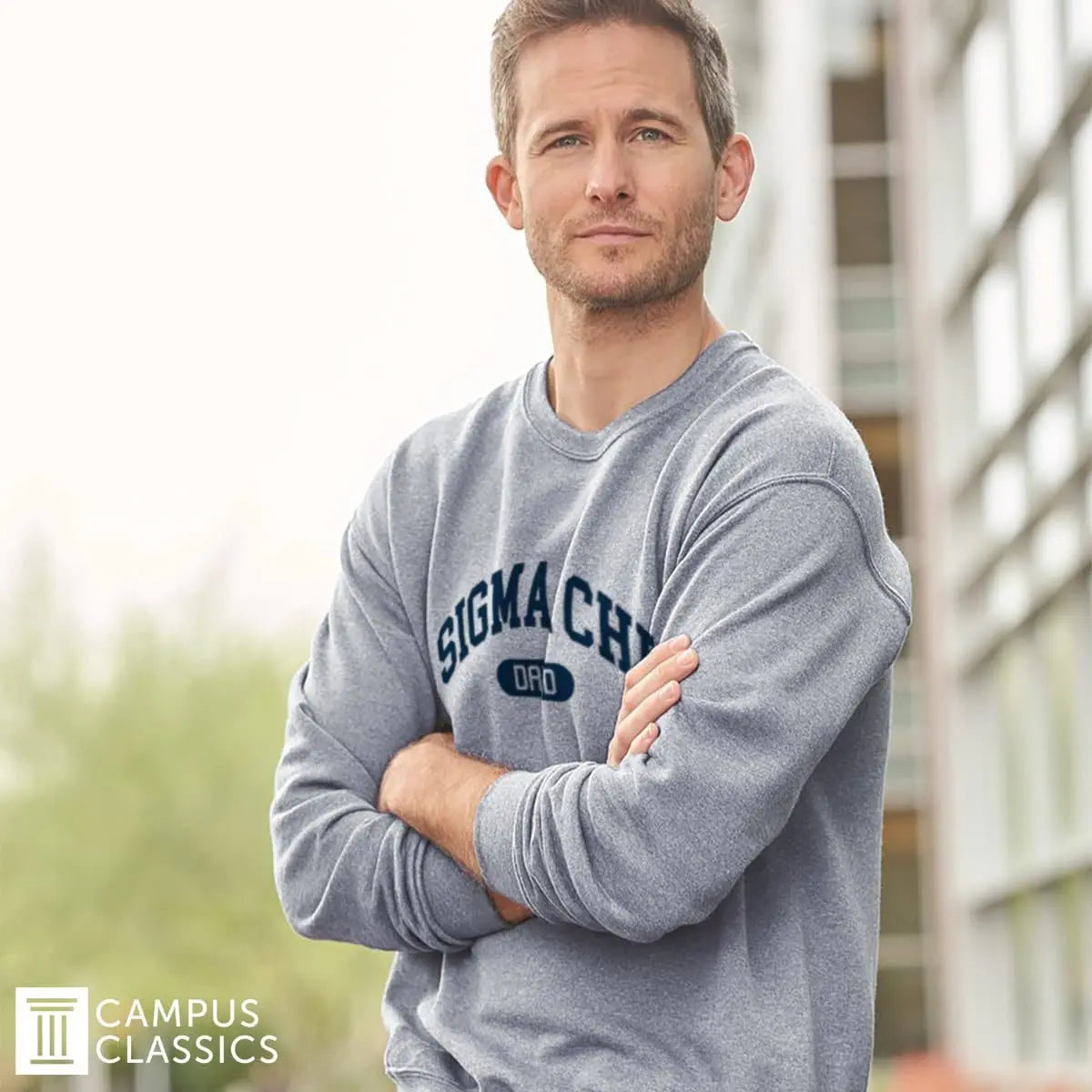 Show your dad how much he means to you by gifting him with this SigEp Classic Dad Crewneck! The design is classic and will never go out of style so you know he'll be rocking it for years to come. Our Sigma Phi Epsilon sweatshirt is printed on a 9.7 oz. Hanes crewneck.