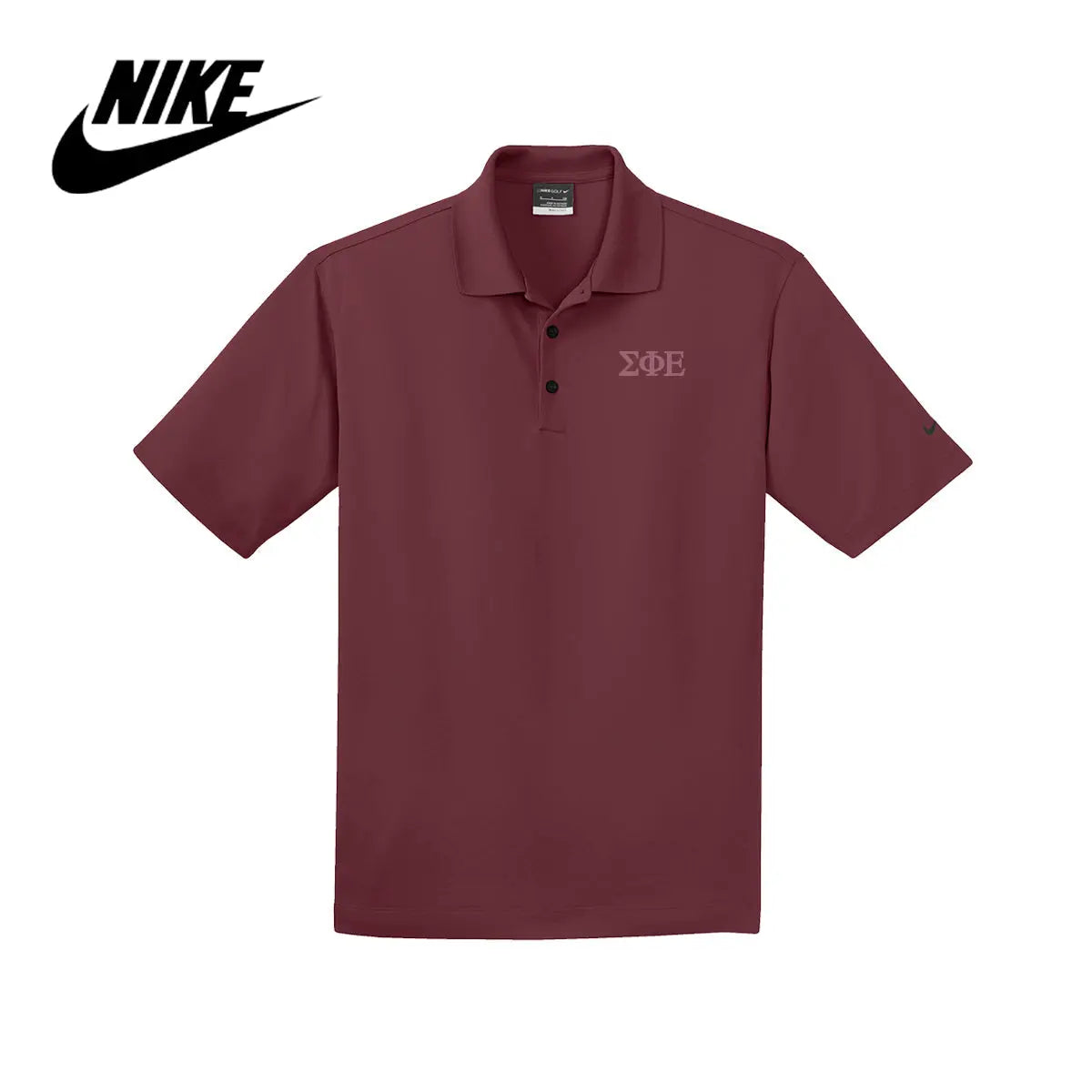 Decorated with high quality embroidery, this SigEp Nike performance polo is a must-have for both active members and alumni. With the track record of Nike's performance polos and embroidered with the Sigma Phi Epsilon letters, you also can choose between 3 separate colors and have the opportunity to make it all your own with personalization! 100% polyester to keep you comfortable and cool no matter the environment and the trademark Nike swoosh on the left sleeve.
