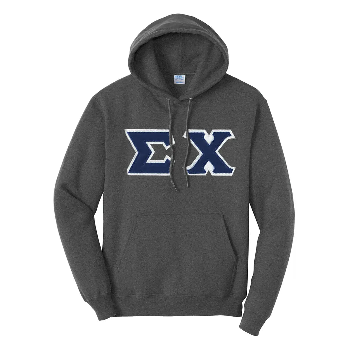 Sigma Chi Dark Heather Hoodie with Sewn On Letters