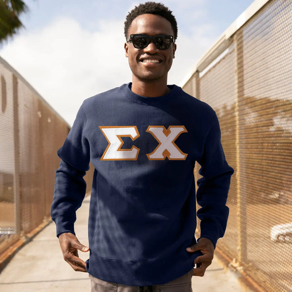 This crewneck sweatshirt with sewn-on letters is a wardrobe staple. Represent Sigma Chi with pride and style! This sweatshirt is made of a 90/10 cotton/polyester blend and has two-layer twill stitched letters.