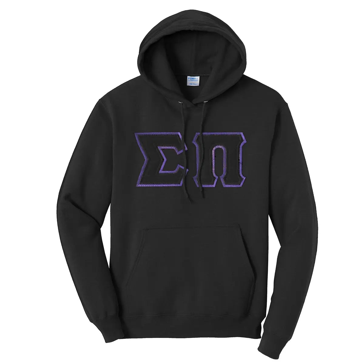 Sigma Pi Black Hoodie with Black Sewn On Letters