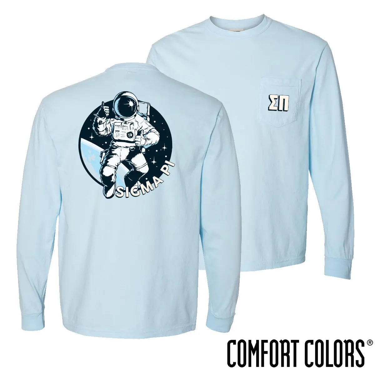 Experience Sigma Pi in a whole new way with this Comfort Colors Space Age Long Sleeve Pocket Tee. Featuring a Sigma Pi astronaut, this long sleeve tee is printed on the ever comfortable Comfort Colors t-shirt.