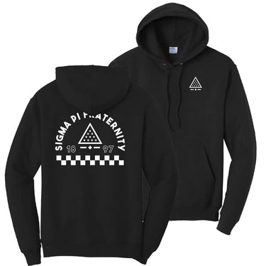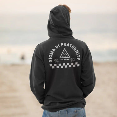 Look stylish while representing your Sigma Pi fraternity with this retro-inspired graphic hoodie. This midweight sweatshirt has a bold design on the back that features the Sigma Pi symbol.