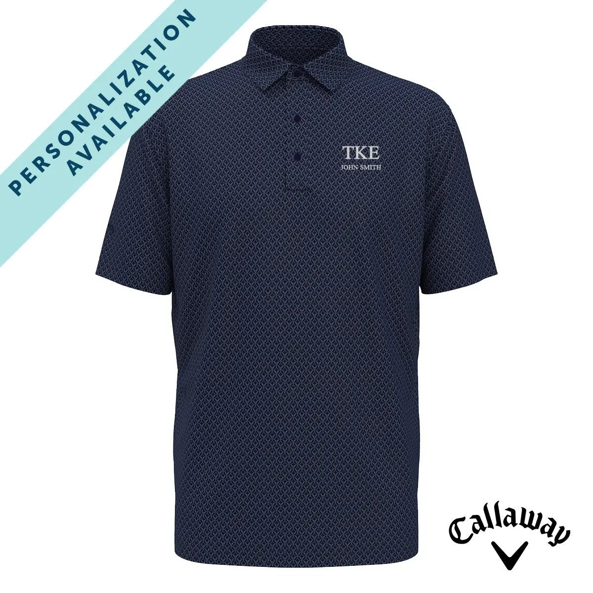 The TKE Callaway Chevron Patterned Polo brings sleek, modern style to classic fraternity apparel. Tau Kappa Epsilon Greek letters are embroidered on the left chest, and you can choose to personalize it for an extra personal touch.