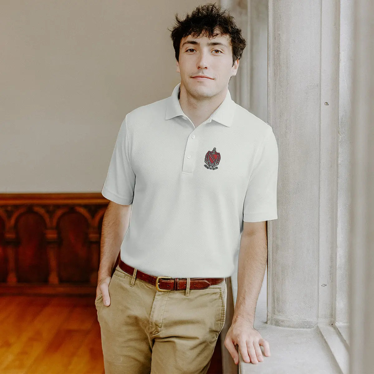 Show your pride on the course, at alumni events, or around campus in the TKE White Callaway Crest Polo. This high-performance polo featuresyour official Greek crest embroidered on the left chest, giving it a polished and brotherly look.