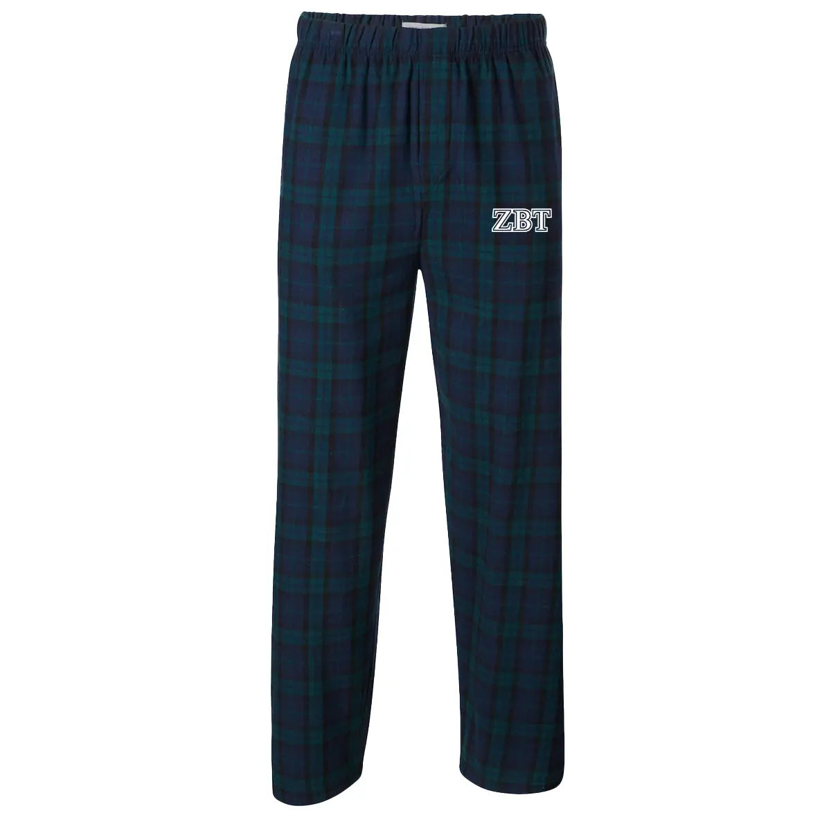 Get comfy in classic fraternity style with these ZBT Blackwatch Flannel Pants. Made from ultra-soft 100% double-brushed cotton flannel, these lounge pants are perfect for lazy weekends, chapter movie nights, or late-night study sessions. The timeless navy and green plaid pattern pairs perfectly with your favorite Zeta Beta Tau tee or hoodie.