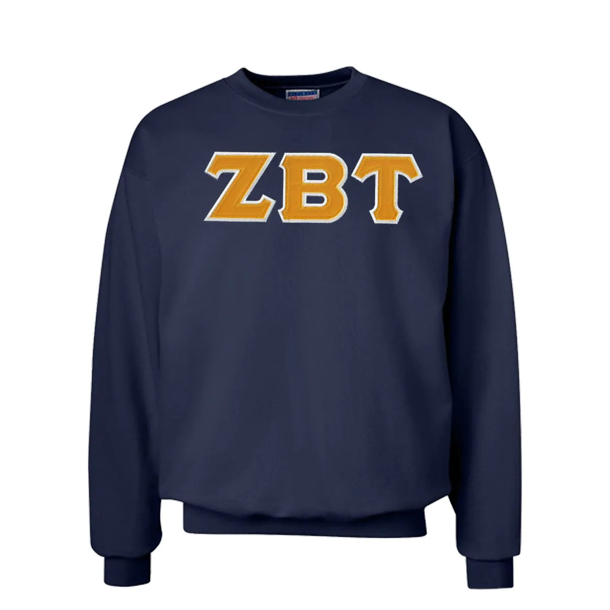 Zeta Beta Tau Navy Crew Neck Sweatshirt with Sewn On Letters
